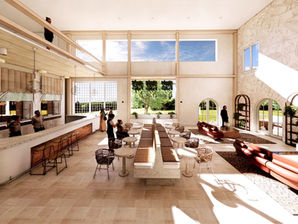 Muse Bar and Pool has a warm palette and combines local timber in repetitive patterns on walls and ceilings. There are numerous privacy screens in this open plan development that allow everyone to feel comfortable. The design has considered sustainability issues and repurposed scraps of wood and made them into display artworks. Hints of green accents feature on walls and in furniture selections bringing the outside landscape into the interior. There are numerous windows placed on both the ground and upper level. I have used transparent wood on open windows to illuminate the interior. This material was created in 1992 by a german researcher Siegfried Fink. It was further developed by scientists to eliminate color and by adding polymers became transparent. This material is both eco-friendly and a good alternative to glass and plastic. Transparent wood is also sustainable and maintains the thermal resistance properties of wood. The process of replacing the organic polymer lignin with a special mix of epoxies is a much stronger wood that allows 90% of light to transfer through it.