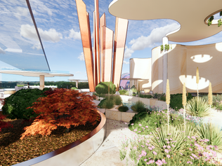 Links to natural elements such as water and the earth have been translated into the landscape design. The sculptural fire element works as both a meeting place and culturally significant artwork about the current fire crisis attacking the nation. To blend in with the current environment, seating has been created with sandstone which is both natural and shows beautiful textures. Glass is a natural material that is both sustainable and allows light to open areas up and divide areas. With a link to aboriginal artworks, river-like waterways divide up the space and create fun play areas for children to explore. The water running in these areas is recycled and provides sustenance to the planted greenery. Greenery always creates a sense of calmness and has been used here to hedge waterways and create a contrast to the surrounding jungle.